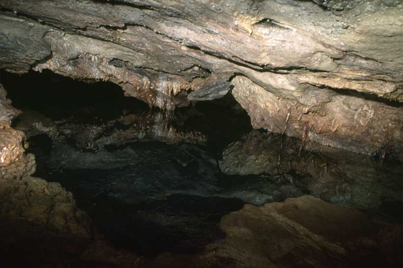 | Non è l'unica cavità sommersa: attraverso una apertura difficile da individuare, si accede ad un laghetto da dove inizia un lungo e stretto cunicolo sommerso, che è stato esplorato per oltre 50 metri, dall'amico Mauro Dacastelli. Non vi è nulla di interessante e l'esplorazione è davvero troppo pericolosa . Ho fotografato il laghetto con ovvie difficoltà per ottenere una illuminazione accettabile. |