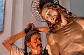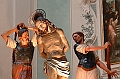 LA FLAGELLAZIONE – ignoto di scuola napoletana del XVII secolo, giunta a Savona nel 1623, assieme alla cassa CRISTO CADE SOTTO LA CROCE . Gesù legato e due flagellatori. Le tre figure portano lo sguardo a soffermarsi sul corpo di Cristo. La cassa impegna 12 portatori. |